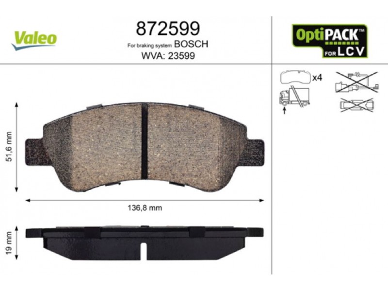 Criteries : Αριθμός WVA 23599, Βάρος [kg] 1,437, Επαφή προειδοποίησης φθοράς εξαιρ. επαφής προειδ. φθοράς, Πάχος [mm] 19, Πλάτος [mm] 137, Πλευρά τοποθέτησης μπροστινός άξονας, Συμπληρωματικό προϊόν/ πληροφορίες 2 για επιβαρυμένες συνθήκες λειτουργίας, Συμπληρωματικό προϊόν/ πληροφορίες 2 χωρίς βίδες, Σύστημα φρένων BOSCH, Υψος [mm] 51,6