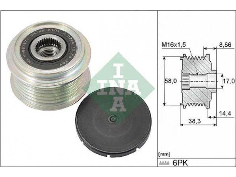 INA ΤΡΟΧΑΛΙΑ ΔΥΝΑΜΟ HYUNDAI INA 535 0296 10 - Ελεύθερη περιστροφή γεννήτριας