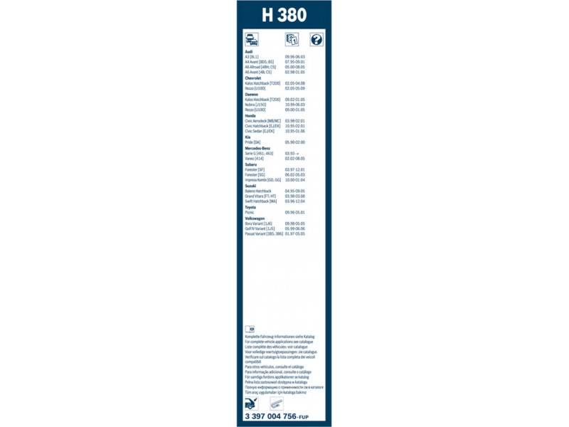 3397004756 ΥΑΛ/ΡΑΣ TWIN REAR 38(H380) BOSCH 3 397 004 756 - Μάκτρο καθαριστήρα