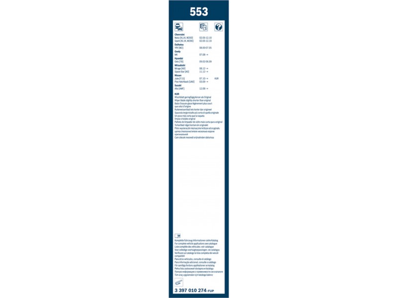 Criteries : Μήκος 1 [mm] 550, Μήκος 2 [mm] 340, Μονάδα ποσότητας Σετ, Παραλλαγή μάκτρων καθαριστήρα Μάκτρο καθαριστήρα χωρίς σπόιλερ, Πλευρά τοποθέτησης εμπρός