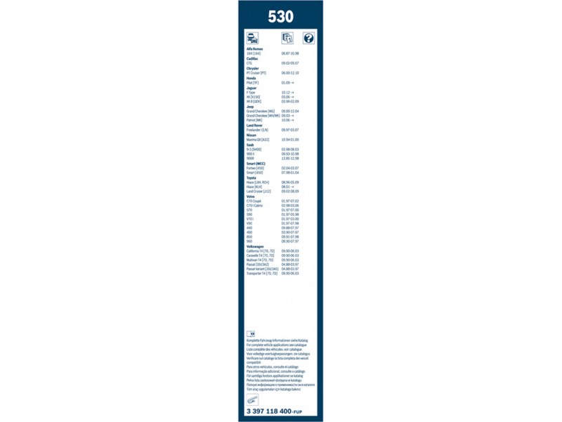 Criteries : Μήκος 1 [mm] 530, Μήκος 2 [mm] 530, Μονάδα ποσότητας Σετ, Παραλλαγή μάκτρων καθαριστήρα Μάκτρο καθαριστήρα χωρίς σπόιλερ, Πλευρά τοποθέτησης εμπρός