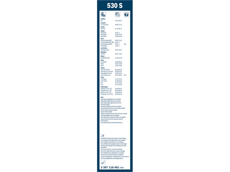 3397118401 ΥΑΛ/ΡΑΣ ΣΕΤ TWIN 53/53(530S) BOSCH 3 397 118 401 - Μάκτρο καθαριστήρα