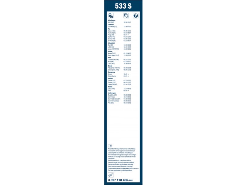 BOSCH ΜΑΚΤΡΑ ΥΑΛΟΚΑΘΑΡΙΣΤΗΡΑ ΣΕΤ 530/475mm VAG BOSCH 3 397 118 406 - Μάκτρο καθαριστήρα