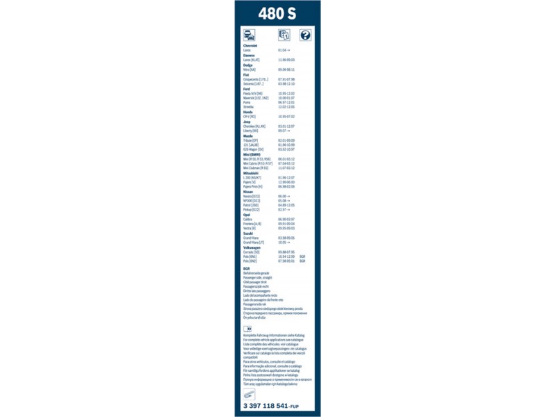 3397118541 ΥΑΛ/ΡΑΣ ΣΕΤ TWIN 48/48(480S) BOSCH 3 397 118 541 - Μάκτρο καθαριστήρα