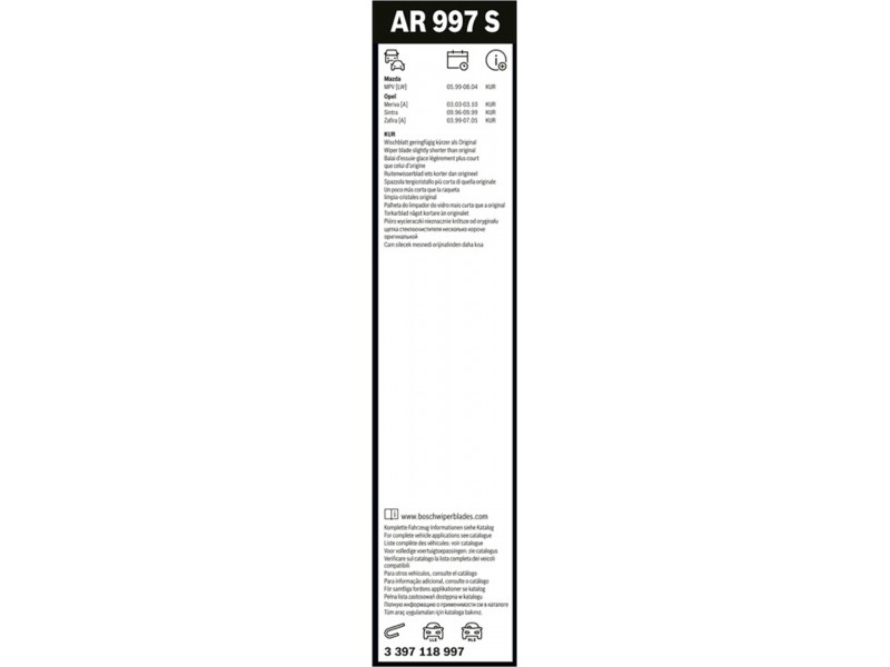 BOSCH ΜΑΚΤΡΑ ΥΑΛΟΚΑΘΑΡΙΣΤΗΡΑ ΣΕΤ 600/550mm BOSCH 3 397 118 997 - Μάκτρο καθαριστήρα