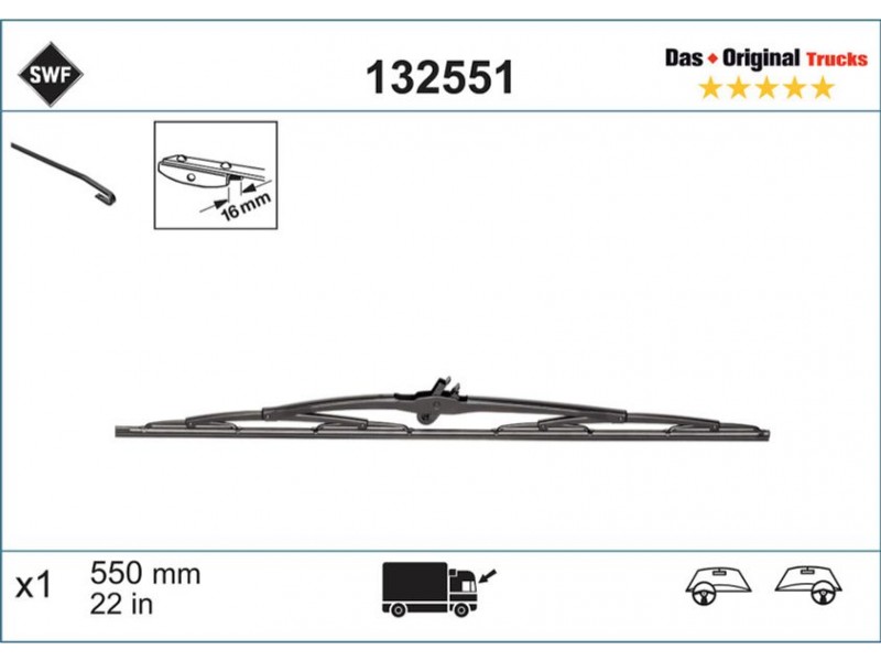 132551 ΜΑΚΤΡΑ 550 X1 SWF DAS ORIGINAL TRUCKS SWF 132551 - Μάκτρο καθαριστήρα