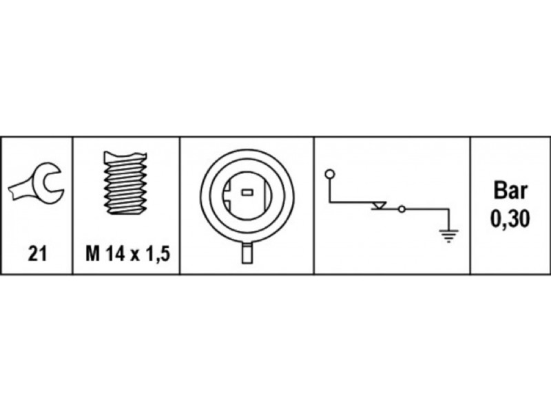 Criteries : Άνοιγμα κλειδιού 21, Αριθμός κουμπωτών επαφών 1, Διαστάσεις σπειρώματος M14x1,5, Λειτουργία διακόπτη Ανοικτήρι, Πίεση [bar] 0,3, Συναρμολόγηση/αποσυναρμολ. μόνο από εξειδικευμένο προσωπικό! , Τάση [V] 12