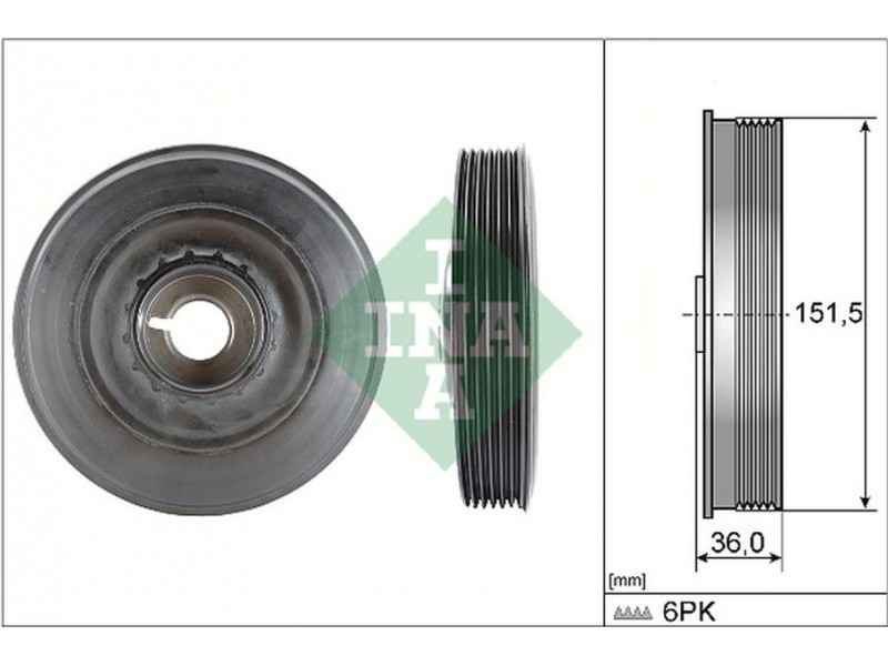 Criteries : Εξωτερική διάμετρος [mm] 151, Πλάτος [mm] 40, Πλήθος εγκοπών 6, Ταλάντωση με αποσβεστήρα κραδασμών