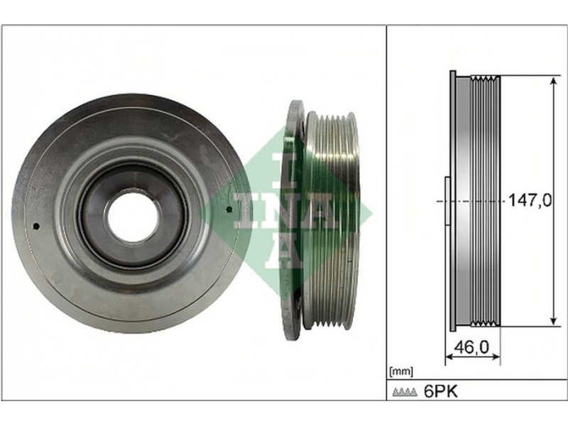 Criteries : Εξωτερική διάμετρος [mm] 147, Πλάτος [mm] 44, Πλήθος εγκοπών 6, Ταλάντωση με αποσβεστήρα κραδασμών