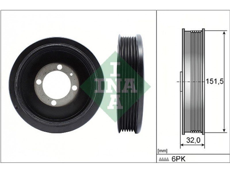 Criteries : Εξωτερική διάμετρος [mm] 152, Πλάτος [mm] 32, Πλήθος εγκοπών 6, Ταλάντωση με αποσβεστήρα κραδασμών