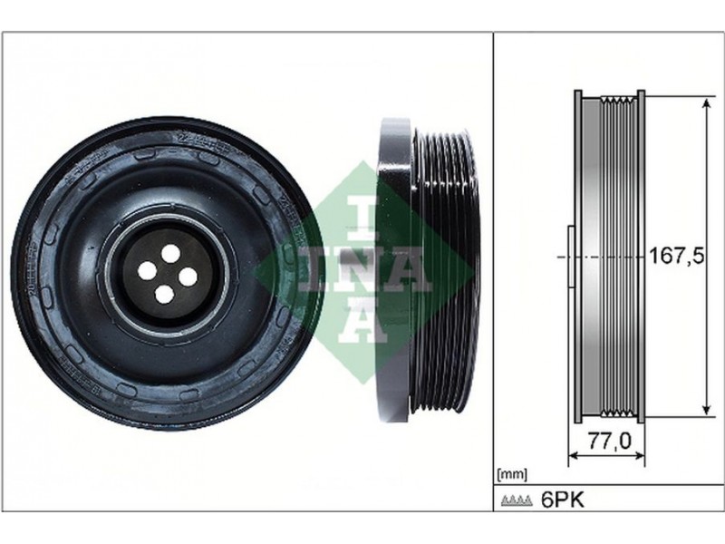 Criteries : Εξωτερική διάμετρος [mm] 168, Πλάτος [mm] 77, Πλήθος εγκοπών 6, Ταλάντωση με αποσβεστήρα κραδασμών