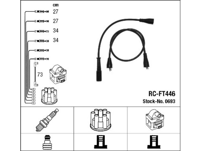 RCFT446 (0693) ΣΕΤ ΜΠΟΥΖΟΚΑΛΩΔΙΑ FIORINO 1.3 87-93 NGK 0693 - Σετ καλωδίων υψηλής τάσης