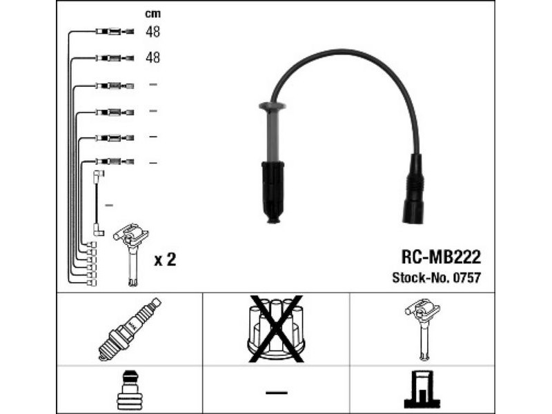 RCMB222 (0757) ΣΕΤ ΜΠΟΥΖΟΚΑΛΩΔΙΑ MB C-CLASS(W202)/E-CLASS(W210)/SLK(R170)/VITO(638) 93-03 NGK 0757 - Σετ καλωδίων υψηλής τάσης