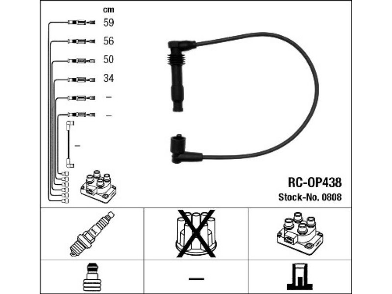 RCOP438(0808)-ΣΕΤ ΜΠΟΥΖΟΚΑΛΩΔΙΑ OPEL ASTRA F/COMBO(71)/CORSA B 1.4-1.6 94-05 NGK 0808 - Σετ καλωδίων υψηλής τάσης