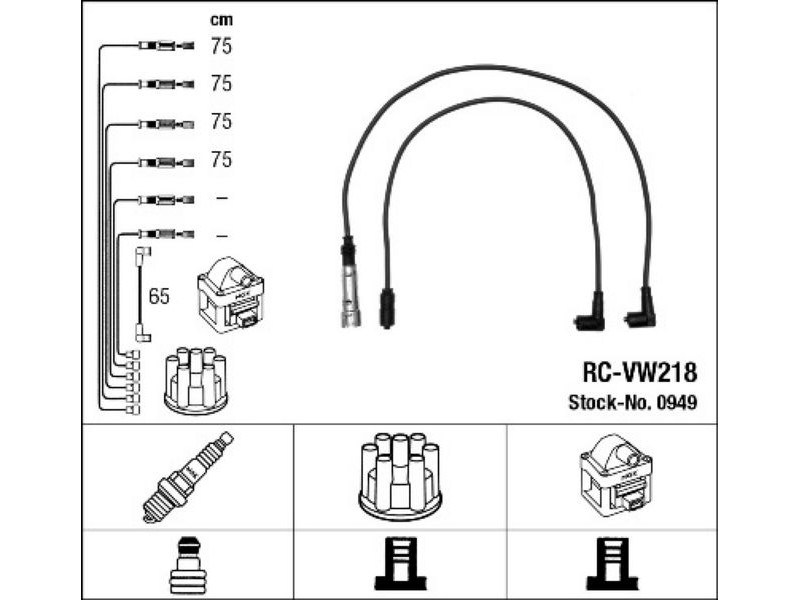 RCVW218(0949)-ΣΕΤ ΜΠΟΥΖΟΚΑΛΩΔΙΑ VAG 100/LEON(1M1)/GOLF II 76-06 NGK 0949 - Σετ καλωδίων υψηλής τάσης