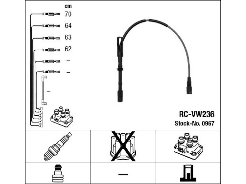 RC-VW236(0967)-ΜΠΟΥΖΟΚΑΛΩΔΙΑ VAG A3(8L1)/OCTAVIA(1U2)/GOLF IV(1J1) 1.8 96-05 NGK 0967 - Σετ καλωδίων υψηλής τάσης