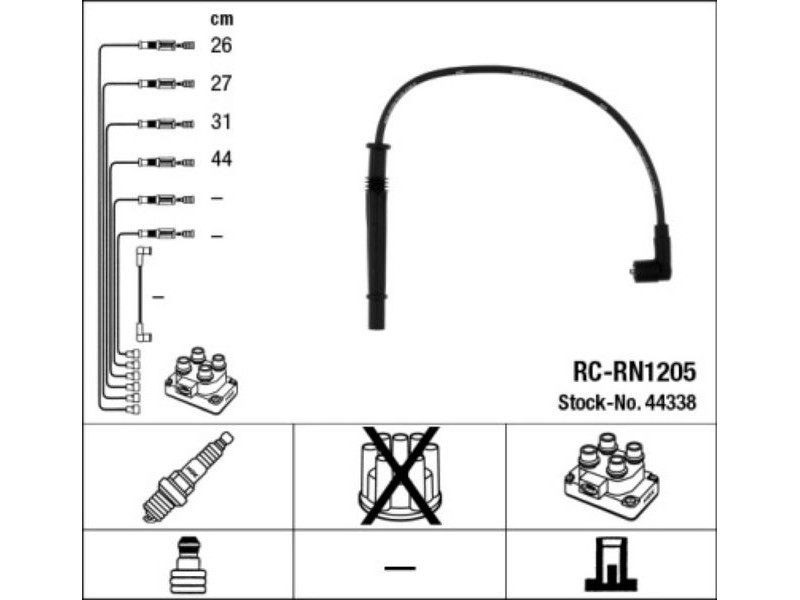 RC-RN1205(44338)-ΜΠΟΥΖΟΚΑΛΩΔΙΑ RENAULT TWINGO II(CN0) 1.2 07-14 NGK 44338 - Σετ καλωδίων υψηλής τάσης