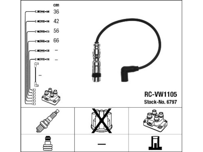 RCVW1105 (6797) ΣΕΤ ΜΠΟΥΖΟΚΑΛΩΔΙΑ SEAT/VW IBIZA IB(6L1)/FOX(5Z1,5Z3) 1.4-1.6 03-09 NGK 6797 - Σετ καλωδίων υψηλής τάσης