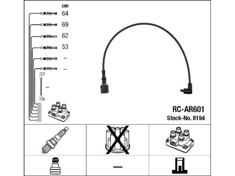 RCAR601 (8194) ΣΕΤ ΜΠΟΥΖΟΚΑΛΩΔΙΑ A146 1.6 96- NGK 8194 - Σετ καλωδίων υψηλής τάσης