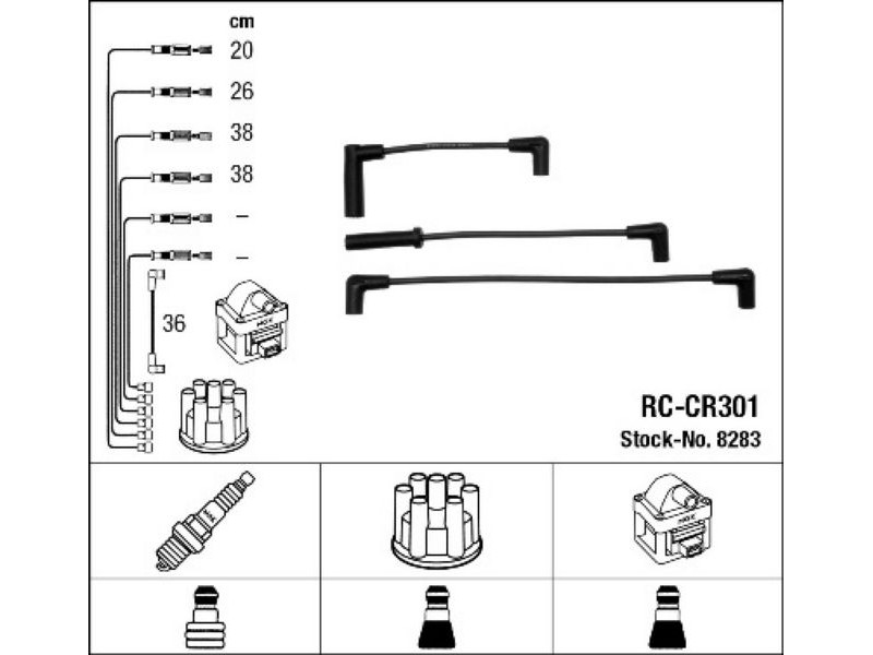 RC-CR301(8283)-ΜΠΟΥΖΟΚΑΛΩΔΙΑ JEEP WRANGLER II(TJ) 2.5 96-07 NGK 8283 - Σετ καλωδίων υψηλής τάσης