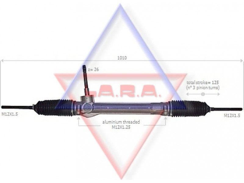 Criteries : Απόσταση των οπών στερέωσης [mm] 339, Αριθμός δοντιών, στέλεχος εισόδου 26, Αριστερή ή δεξιά κυκλοφορία για δεξιά κυκλοφορία, Αριστερό ή δεξιό τιμόνι για αριστεροτίμονα οχήματα, Διάμετρος, στέλεχος εισόδου [mm] 14,1, Διαστάσεις σπειρώματος αξονικής άρθρωσης M12x1,5, Είδος κιβωτίου συστήματος οδήγησης Οδοντωτή ράβδος - πυξίδα διεύθυνσης, Μήκος 1/ μήκος 2 [mm] stroke= 125, Ολικό μήκος [mm] 1010, Πλήθος των στροφών τιμονιού 3, Τρόπος λειτουργίας ηλεκτρικό, Τρόπος λειτουργίας χειροκίνητο, Τύπος σπειρώματος αξονικής άρθρωσης με εξωτερικό σπείρωμα, Τύπος σύνδεσης, στέλεχος εισόδου οδοντωτό, Ύψος, στέλεχος εισόδου [mm] 128