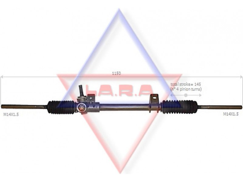Criteries : Απόσταση των οπών στερέωσης [mm] 294, Αριστερή ή δεξιά κυκλοφορία για δεξιά κυκλοφορία, Αριστερό ή δεξιό τιμόνι για αριστεροτίμονα οχήματα, Διάμετρος, στέλεχος εισόδου [mm] 18,5, Διαστάσεις σπειρώματος αξονικής άρθρωσης M14x1,5, Είδος κιβωτίου συστήματος οδήγησης Οδοντωτή ράβδος - πυξίδα διεύθυνσης, Μήκος 1/ μήκος 2 [mm] stroke= 145, Ολικό μήκος [mm] 1150, Πλήθος των στροφών τιμονιού 4, Τρόπος λειτουργίας μηχανικό, Τρόπος λειτουργίας χειροκίνητο, Τύπος σπειρώματος αξονικής άρθρωσης με εσωτερικό σπείρωμα, Τύπος σύνδεσης, στέλεχος εισόδου τετράγωνο, Ύψος, στέλεχος εισόδου [mm] 46