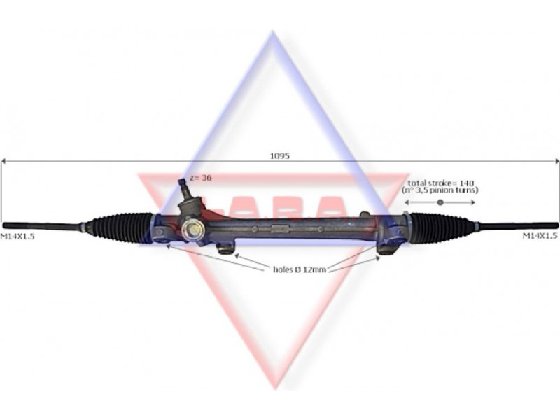 Criteries : Απόσταση των οπών στερέωσης [mm] 440, Αριθμός δοντιών, στέλεχος εισόδου 36, Αριστερή ή δεξιά κυκλοφορία για δεξιά κυκλοφορία, Αριστερό ή δεξιό τιμόνι για αριστεροτίμονα οχήματα, Διάμετρος, στέλεχος εισόδου [mm] 16,1, Διαστάσεις σπειρώματος αξονικής άρθρωσης M14x1,5, Είδος κιβωτίου συστήματος οδήγησης Οδοντωτή ράβδος - πυξίδα διεύθυνσης, Μήκος 1/ μήκος 2 [mm] stroke= 140, Ολικό μήκος [mm] 1095, Πλήθος των στροφών τιμονιού 3,5, Τρόπος λειτουργίας ηλεκτρικό, Τρόπος λειτουργίας χειροκίνητο, Τύπος σπειρώματος αξονικής άρθρωσης με εξωτερικό σπείρωμα, Τύπος σύνδεσης, στέλεχος εισόδου οδοντωτό, Ύψος, στέλεχος εισόδου [mm] 46