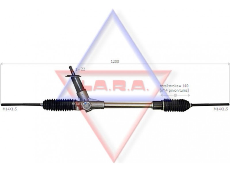 Criteries : Αριθμός δοντιών, στέλεχος εισόδου 22, Αριστερή ή δεξιά κυκλοφορία για δεξιά κυκλοφορία, Αριστερό ή δεξιό τιμόνι για αριστεροτίμονα οχήματα, Διάμετρος, στέλεχος εισόδου [mm] 17,4, Διαστάσεις σπειρώματος αξονικής άρθρωσης M14x1,5, Είδος κιβωτίου συστήματος οδήγησης Οδοντωτή ράβδος - πυξίδα διεύθυνσης, Μήκος 1/ μήκος 2 [mm] stroke= 140, Ολικό μήκος [mm] 1200, Πλήθος των στροφών τιμονιού 4, Τρόπος λειτουργίας μηχανικό, Τρόπος λειτουργίας χειροκίνητο, Τύπος σπειρώματος αξονικής άρθρωσης με εξωτερικό σπείρωμα, Τύπος σύνδεσης, στέλεχος εισόδου οδοντωτό, Ύψος, στέλεχος εισόδου [mm] 145