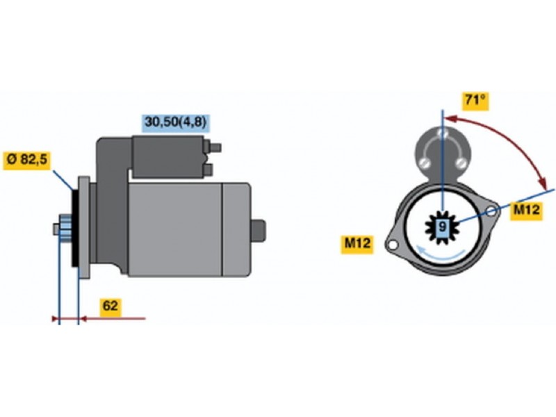 Criteries : Αριθμός δοντιών 9, Αρχική θέση γραναζιού [mm] 59, Γωνία Οπή στερέωσης [μοίρες] 71, Γωνία στήριξης [μοίρες] 71, Διάμετρος φλάντζας [mm] 82,5, Διαστάσεις σπειρώματος 1 M12x1.75, Διαστάσεις σπειρώματος M12, Επαφή 30, Επαφή 50, Θέση/βαθμοί rechts, Ισχύς μίζας [kW] 2,2, Μήκος [mm] 243, Παραλλαγή μίζας ελεύθερο, Πλήθος οπών με βόλτα 2, Πλήθος των οπών στερέωσης 0, Τάση [V] 12, Φορά περιστροφής Φορά περιστροφής προς τα δεξιά