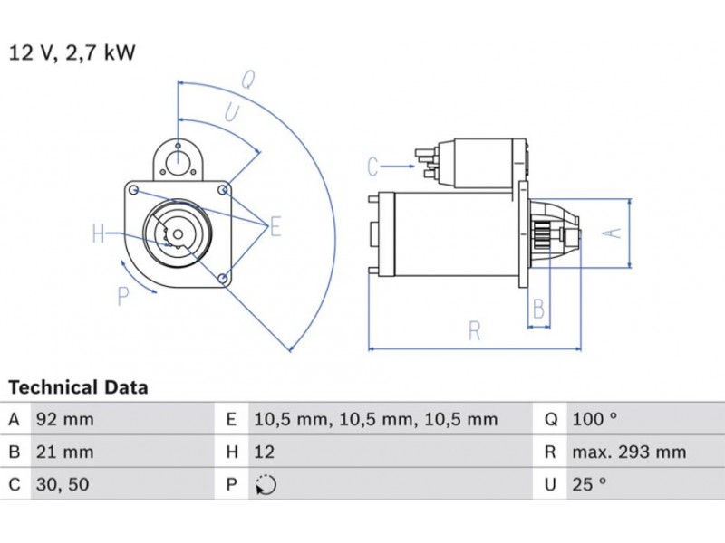 Criteries : Αριθμός δοντιών 12, Αρχική θέση γραναζιού [mm] 21, Γωνία Οπή στερέωσης [μοίρες] 25, Γωνία στήριξης [μοίρες] 25, Γωνία Στόμιο [μοίρες] 100, Διάμετρος οπής 2 [mm] 10,5, Διαμέτρος οπής 3 [mm] 10,5, Διάμετρος οπής [mm] 10,5, Διάμετρος φλάντζας [mm] 92, Επαφή 30, Επαφή 50, Θέση/βαθμοί rechts, Ισχύς μίζας [kW] 2,7, Μήκος [mm] 293, Παλαιό εξάρτημα , Παραλλαγή μίζας αυτοέδραση, Πλήθος οπών με βόλτα 0, Πλήθος των οπών στερέωσης 3, Τάση [V] 12, Φορά περιστροφής Φορά περιστροφής προς τα δεξιά