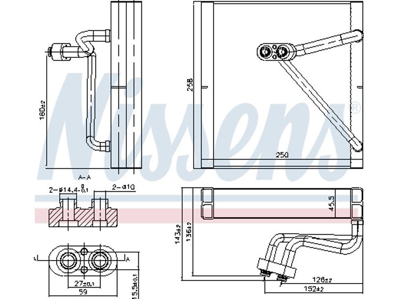 Criteries : Αριθμός κυλίνδρων R 1234yf, Αριθμός κυλίνδρων R 134a, Βάθος διχτυού [mm] 45, Διάμετρος εισόδου [mm] 14,4, Διάμετρος εξόδου [mm] 14,4, Μήκος διχτυού [mm] 250, Πλάτος διχτυού [mm] 254, Υλικό Αλουμίνιο