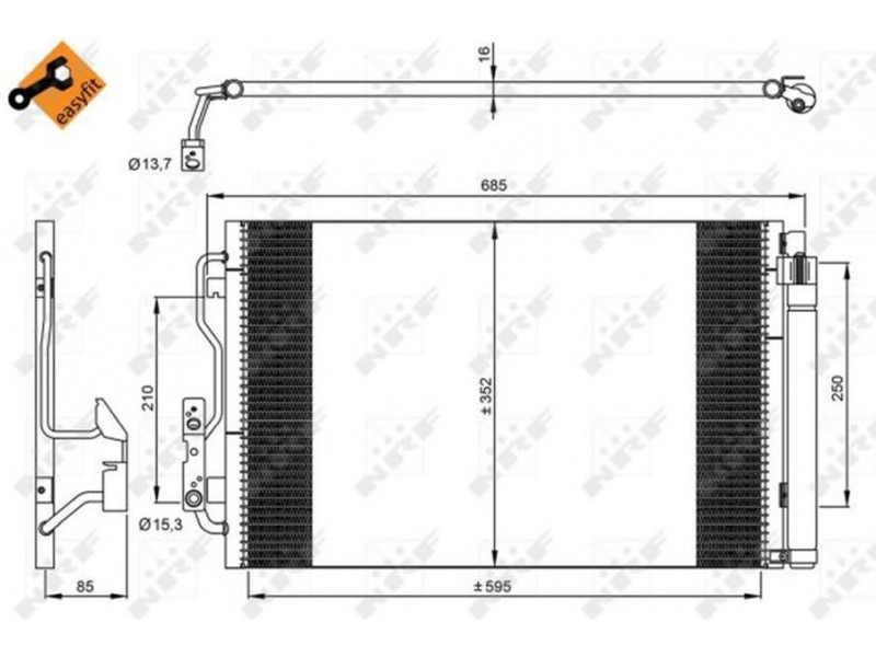 Criteries : Αριθμός κυλίνδρων R 134a, Βάθος διχτυού [mm] 16, Διάμετρος εισόδου [mm] 15,3, Διάμετρος εξόδου [mm] 13,7, Μήκος διχτυού [mm] 595, Πλάτος διχτυού [mm] 352, Συμπληρωματικό προϊόν/ πληροφορίες 2 με ξηραντήρα, Συμπληρωματικό προϊόν/ πληροφορίες 2 με στεγανοποιητικό δακτύλιο, Υλικό Αλουμίνιο