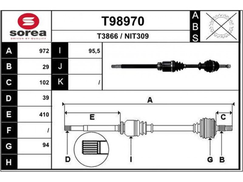 EAI ΗΜΙΑΞΟΝΙΟ NISSAN EAI T98970 - Άξονας μετάδοσης κίνησης