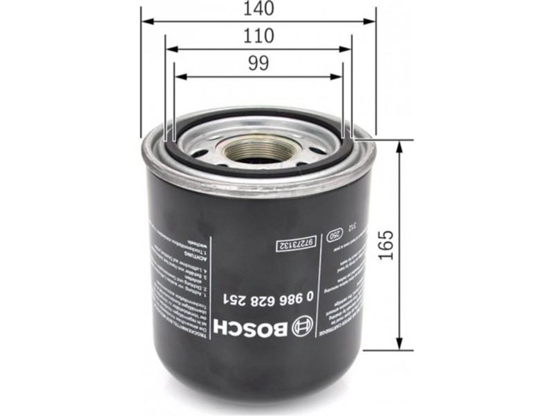 0986628251 ΦΙΛΤΡΟ ΞΗΡΑΝΤΗΡΑ REN,ΜΒ,UNIMOG BOSCH 0 986 628 251 - Στοιχείο αφυγρ., σύστ. πεπ. αέρα