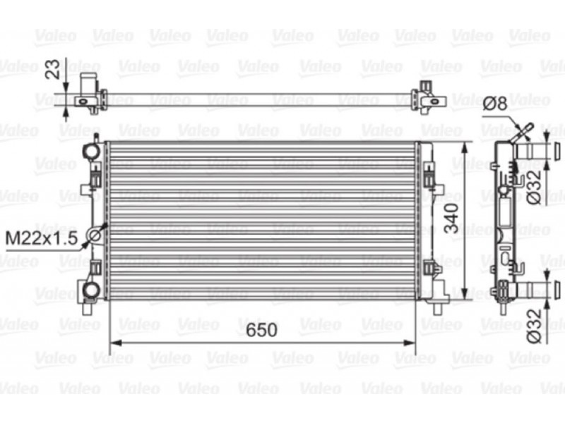 Criteries : Βάθος διχτυού [mm] 23, Βάρος [kg] 3,01, Διάμετρος εισόδου [mm] 32, Διάμετρος εξόδου [mm] 32, Θέρμανση/ψύξη για οχήματα χωρίς ψυγείο λαδιού, Μήκος διχτυού [mm] 340, Παραλλαγή ψυγείου Πτερύγια ψύξης συνδέονται με μηχανικό τρόπο, Πλάτος διχτυού [mm] 650, Συμπληρωματικό προϊόν/ πληροφορίες 2 με θερμοστάτη, Υλικό Αλουμίνιο