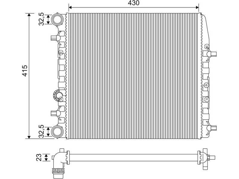 Criteries : Βάθος διχτυού [mm] 23, Βάρος [kg] 3, Διάμετρος εισόδου [mm] 32, Διάμετρος εξόδου [mm] 32, Θέρμανση/ψύξη για οχήματα χωρίς ψυγείο λαδιού, Μήκος διχτυού [mm] 430, Παραλλαγή ψυγείου Πτερύγια ψύξης συνδέονται με μηχανικό τρόπο, Πλάτος διχτυού [mm] 415, Συμπληρωματικό προϊόν/ πληροφορίες 2 με θερμοστάτη, Υλικό Αλουμίνιο