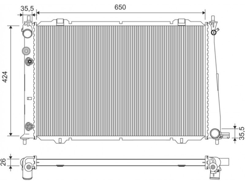 Criteries : Βάθος διχτυού [mm] 26, Βάρος [kg] 5, Διάμετρος εισόδου [mm] 35,5, Διάμετρος εξόδου [mm] 35,5, Θέρμανση/ψύξη για οχήματα χωρίς ψυγείο λαδιού, Μήκος διχτυού [mm] 424, Παραλλαγή ψυγείου Πτερύγια ψύξης συγκολλημένα, Πλάτος διχτυού [mm] 650, Συμπληρωματικό προϊόν/ πληροφορίες 2 χωρίς θερμοστάτη, Τύπος περιβλήματος Μταλλικό περίβλημα, Υλικό Αλουμίνιο