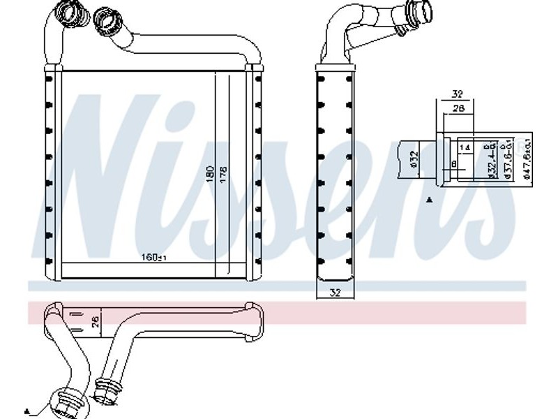 Criteries : Βάθος διχτυού [mm] 26, Διάμετρος εισόδου [mm] 16, Διάμετρος εξόδου [mm] 16, Μήκος διχτυού [mm] 160, Παραλλαγή ψυγείου Πτερύγια ψύξης συγκολλημένα, Πλάτος διχτυού [mm] 178, Συμπληρωματικό προϊόν / συμπληρωματική πληροφορία με σωλήνα, Υλικό νεροχύτη (ψυγείο) Αλουμίνιο, Υλικό πτερυγίων ψύξης Αλουμίνιο
