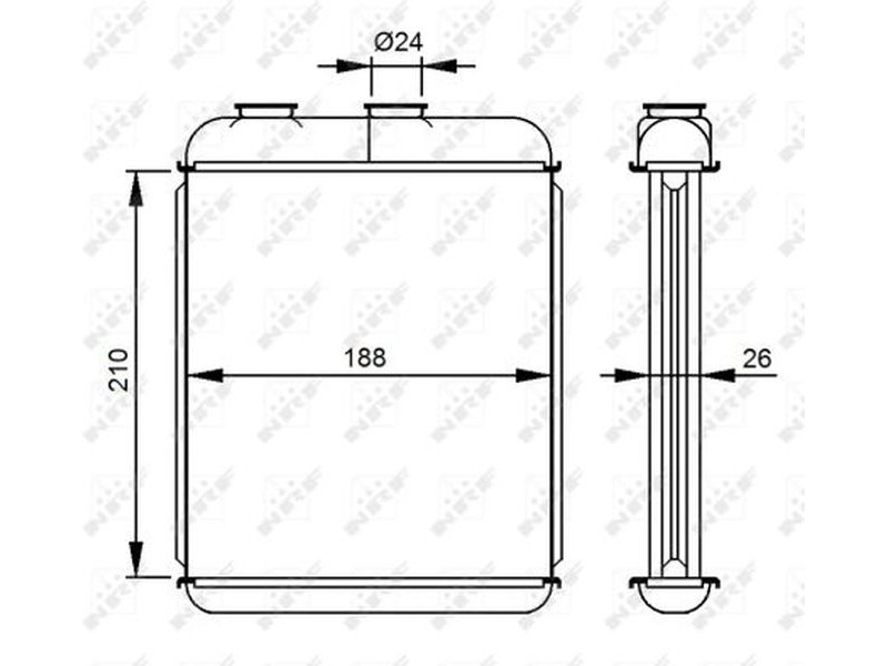 Criteries : Βάθος διχτυού [mm] 26, Μήκος διχτυού [mm] 210, Παραλλαγή ψυγείου Πτερύγια ψύξης συγκολλημένα, Περιορισμός κατασκευαστή DELPHI, Πλάτος διχτυού [mm] 188, Συμπληρωματικό προϊόν/ πληροφορίες 2 χωρίς αγωγό, Υλικό Αλουμίνιο