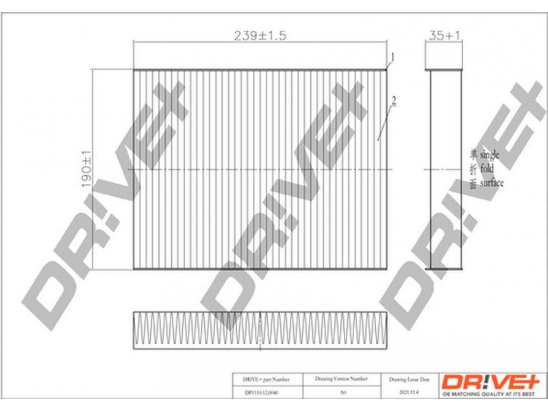 Criteries : Μήκος [mm] 240, Παραλλαγή φίλτρου Φίλτρο σωματιδίων, Πλάτος [mm] 190, Υψος [mm] 35
