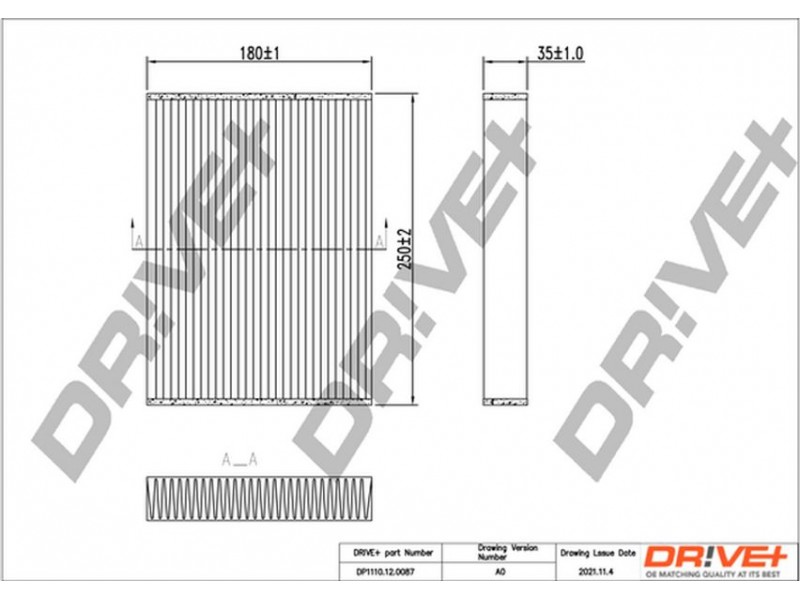 Criteries : Μήκος [mm] 250, Παραλλαγή φίλτρου Φίλτρο σωματιδίων, Πλάτος [mm] 180, Υψος [mm] 35