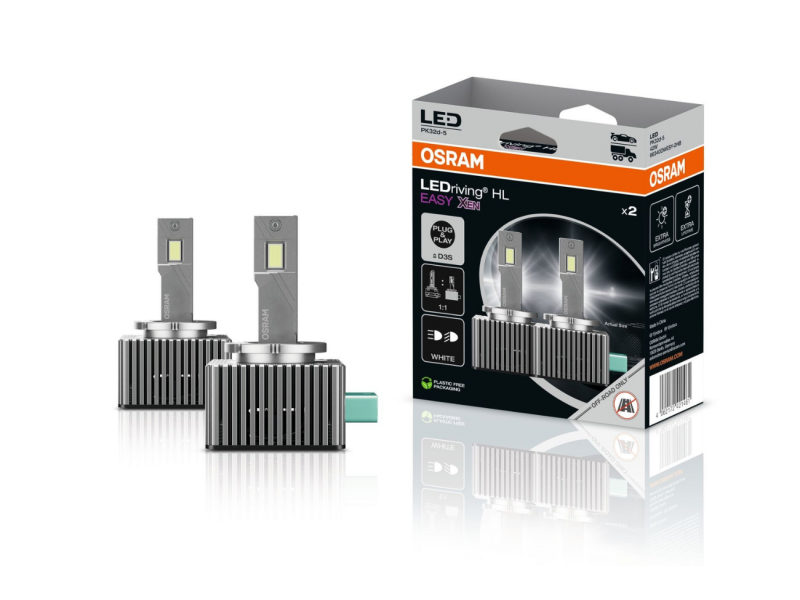 Η σειρά OSRAM LEDriving HL EASY αντιπροσωπεύει την πιο απλή και αποτελεσματική λύση για την αναβάθμιση των εργοστασιακών φαναριών Xenon (D3S) σε τεχνολογία LED. Με σχεδιασμό "plug & play", δεν απαιτούνται αντάπτορες ή εξωτερικά drivers, προσφέροντας μια κομψή και εύκολη εγκατάσταση.