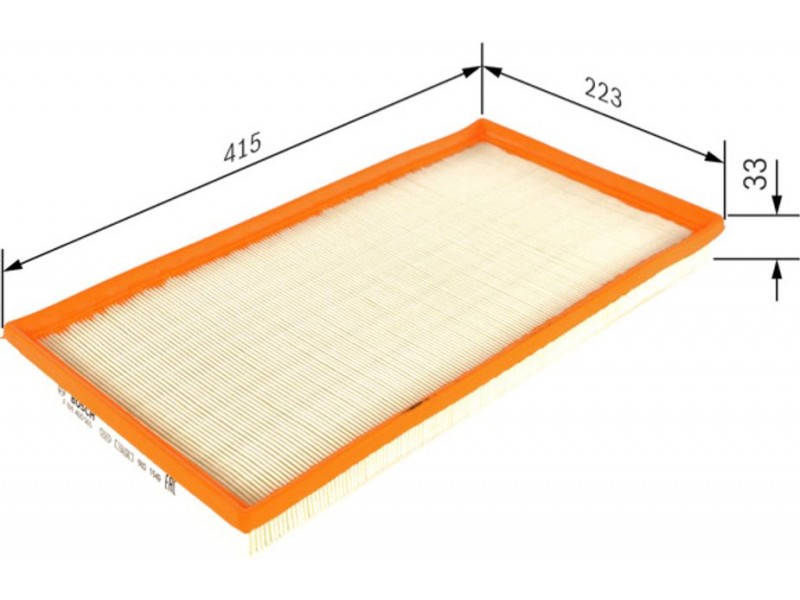 Criteries : Μήκος [mm] 415, Παραλλαγή φίλτρου Στοιχείο φίλτρου, Πλάτος [mm] 222,5, Ποσότητα 1, Υψος [mm] 33