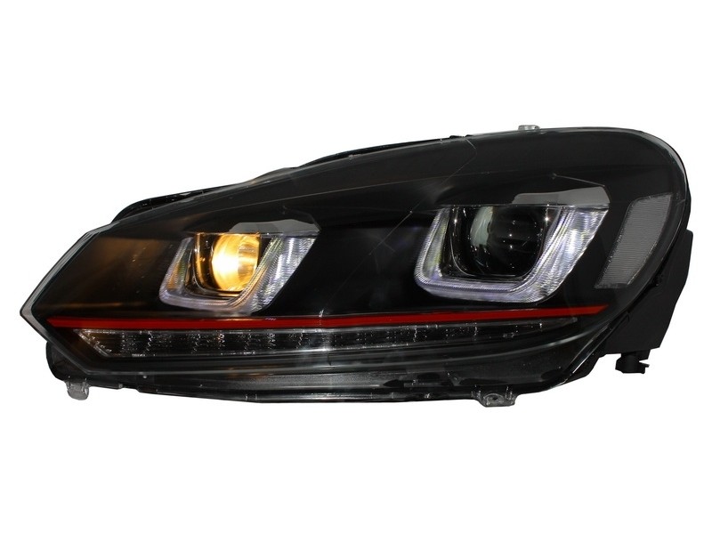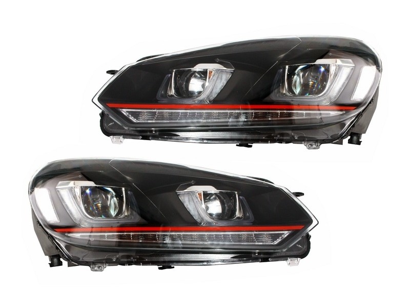Προβολείς Κατάλληλοι Για Vw Golf 6 Vi (2008-2012) Golf 7 3D Led Drl U-Design Led Flowing Turning Light Red Stripe Gti