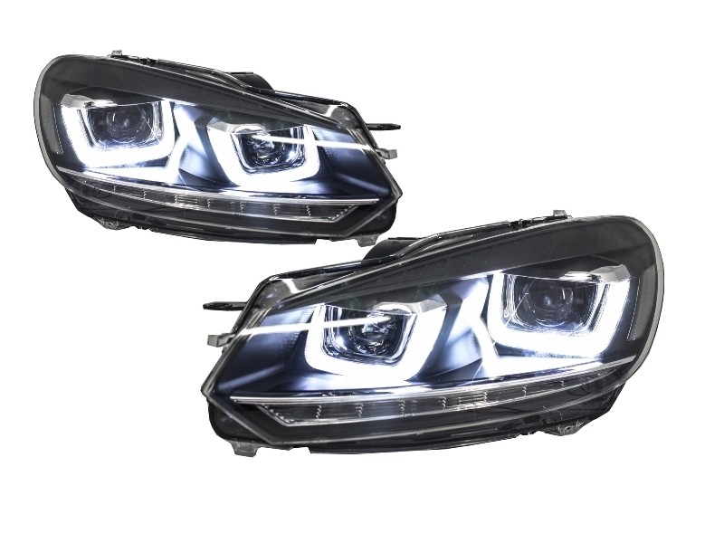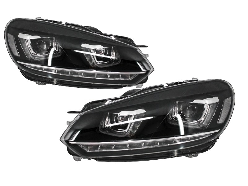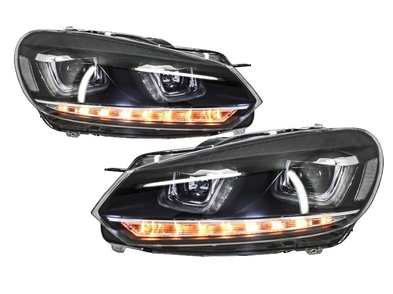 Προβολείς Κατάλληλοι Για Vw Golf 6 Vi (2008-2013) Golf 7 3D Led Drl U-Design Led Flowing Turning Light Chrome