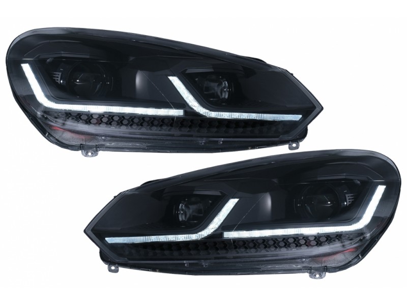 Προβολείς Led Κατάλληλοι Για Vw Golf 6 (2008-2013) Με Facelift G7.5 Look Black, Ροή Δυναμικών Διαδοχικών Φώτων Φλας Αρ.