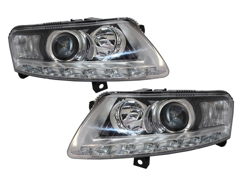 Προβολείς Xenon Led Drl Κατάλληλοι Για Audi A6 C6 4F (04.2004-2008) Χρωμιωμένοι Χωρίς Afs