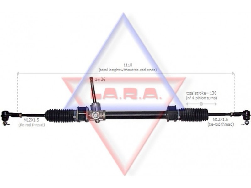 Criteries : Αριθμός δοντιών, στέλεχος εισόδου 36, Αριστερή ή δεξιά κυκλοφορία για δεξιά κυκλοφορία, Αριστερό ή δεξιό τιμόνι για αριστεροτίμονα οχήματα, Διάμετρος, στέλεχος εισόδου [mm] 15,7, Διαστάσεις σπειρώματος αξονικής άρθρωσης M12x1,5, Είδος κιβωτίου συστήματος οδήγησης Οδοντωτή ράβδος - πυξίδα διεύθυνσης, Μήκος 1/ μήκος 2 [mm] stroke= 130, Ολικό μήκος [mm] 1110, Πλήθος των στροφών τιμονιού 4, Τρόπος λειτουργίας μηχανικό, Τρόπος λειτουργίας χειροκίνητο, Τύπος σπειρώματος αξονικής άρθρωσης με εξωτερικό σπείρωμα, Τύπος σύνδεσης, στέλεχος εισόδου οδοντωτό, Ύψος, στέλεχος εισόδου [mm] 130