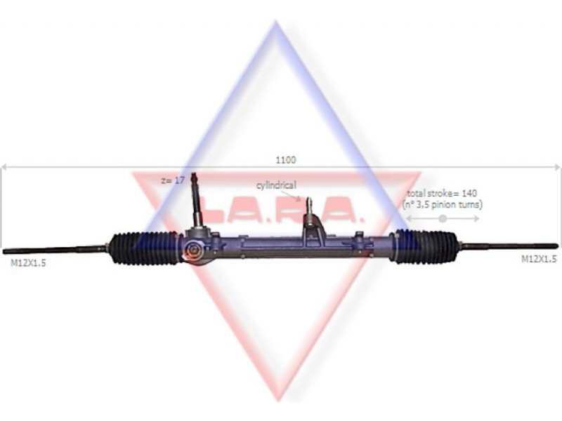 Criteries : Απόσταση των οπών στερέωσης [mm] 270, Αριθμός δοντιών, στέλεχος εισόδου 17, Αριστερή ή δεξιά κυκλοφορία για δεξιά κυκλοφορία, Αριστερό ή δεξιό τιμόνι για αριστεροτίμονα οχήματα, Διάμετρος, στέλεχος εισόδου [mm] 14,1, Διαστάσεις σπειρώματος αξονικής άρθρωσης M12x1,5, Είδος κιβωτίου συστήματος οδήγησης Οδοντωτή ράβδος - πυξίδα διεύθυνσης, Μήκος 1/ μήκος 2 [mm] stroke= 138, Ολικό μήκος [mm] 1100, Πλήθος των στροφών τιμονιού 3,5, Τρόπος λειτουργίας μηχανικό, Τρόπος λειτουργίας χειροκίνητο, Τύπος σπειρώματος αξονικής άρθρωσης με εξωτερικό σπείρωμα, Τύπος σύνδεσης, στέλεχος εισόδου οδοντωτό, Ύψος, στέλεχος εισόδου [mm] 108