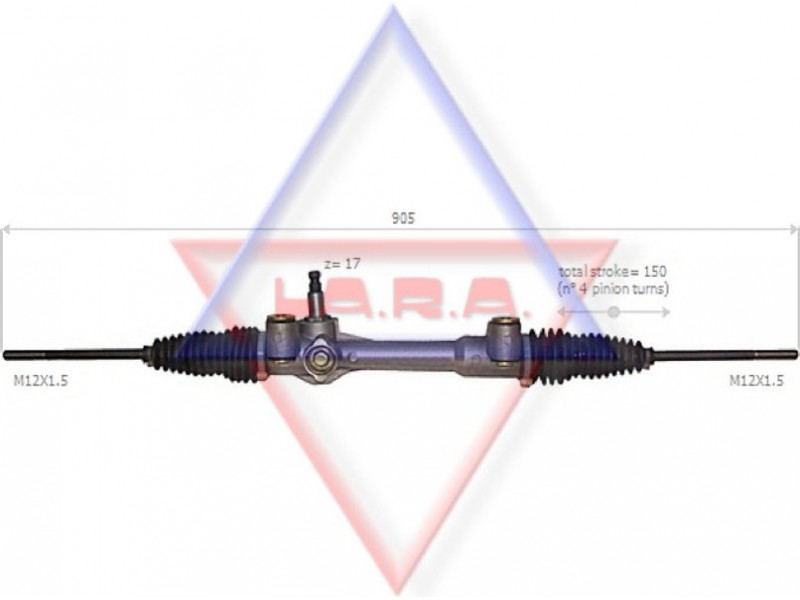 Criteries : Απόσταση των οπών στερέωσης [mm] 240, Αριθμός δοντιών, στέλεχος εισόδου 17, Αριστερή ή δεξιά κυκλοφορία για δεξιά κυκλοφορία, Αριστερό ή δεξιό τιμόνι για αριστεροτίμονα οχήματα, Διάμετρος, στέλεχος εισόδου [mm] 14,1, Διαστάσεις σπειρώματος αξονικής άρθρωσης M12x1,5, Είδος κιβωτίου συστήματος οδήγησης Οδοντωτή ράβδος - πυξίδα διεύθυνσης, Εξοπλισμός οχήματος για οχήμ. χωρίς υποβοήθηση τιμονιού, Μήκος 1/ μήκος 2 [mm] stroke= 150, Ολικό μήκος [mm] 905, Πλήθος των στροφών τιμονιού 4, Τρόπος λειτουργίας μηχανικό, Τρόπος λειτουργίας χειροκίνητο, Τύπος σπειρώματος αξονικής άρθρωσης με εξωτερικό σπείρωμα, Τύπος σύνδεσης, στέλεχος εισόδου οδοντωτό, Ύψος, στέλεχος εισόδου [mm] 56